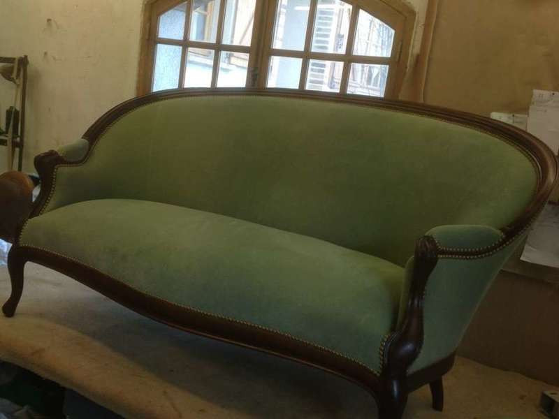 puis vient la pose du tissu choisi ou fournies ultérieurement par le client avant de passé à la finition comme les clous , galons et double passepoil etc...